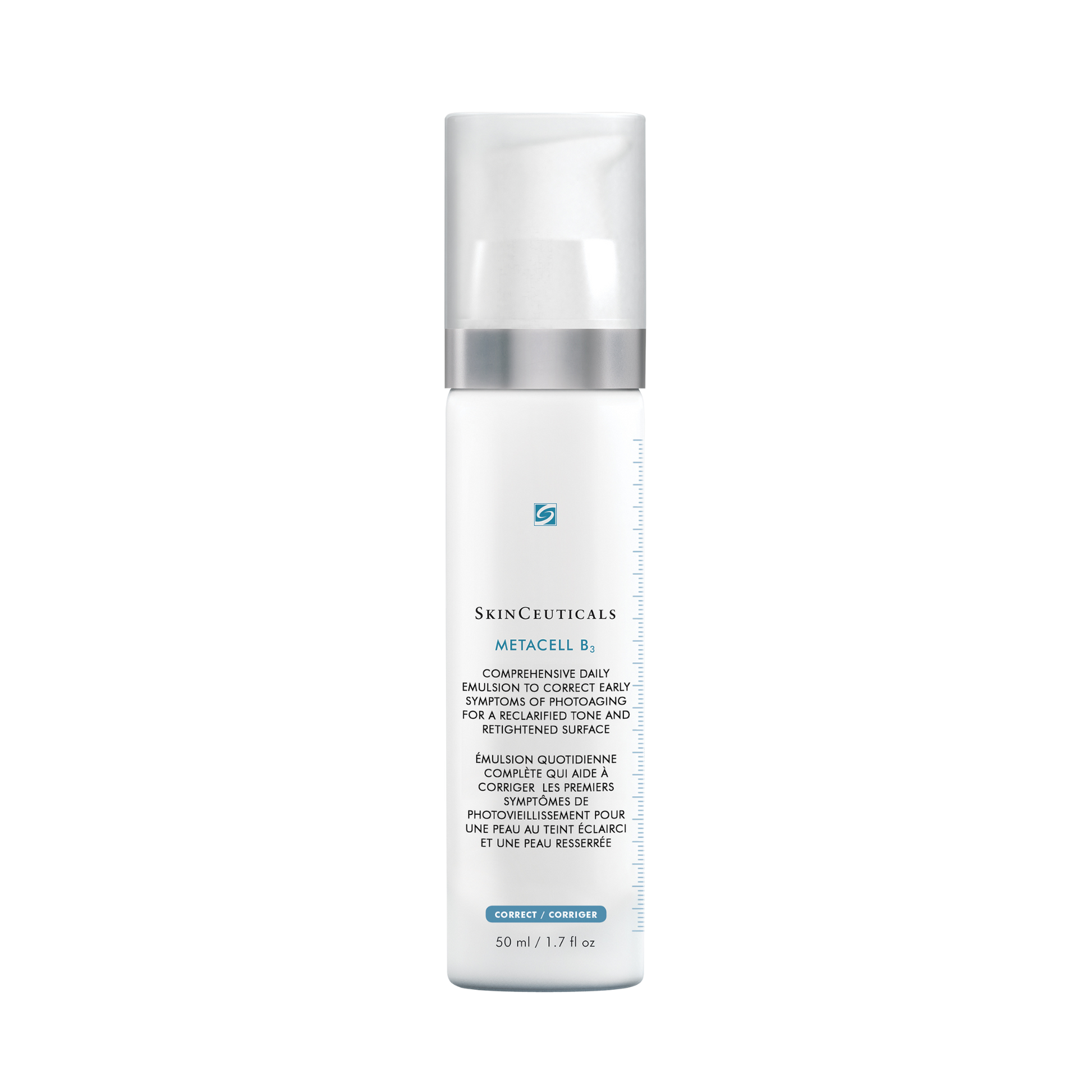 Metacell Renewal B3 utilizes a patent-pending aqueous emulsion to deliver a high concentration of 5% niacinamide (vitamin B3) combined with a firming tripeptide concentrate, and 15% pure glycerin to address early signs of photoaging. While signs of photoaging appear at different intensities according to skin biology, lifestyle, geography, sun protection behavior, and skincare regimen, they have a multiplicative effect, creating a prematurely-aged appearance. This comprehensive daily emulsion visibly improves these early signs of photoaing by increasing cell turnover to resurface skin, help reclarify and even skin tone, and improve the appearance of wrinkles and surface elasticity.