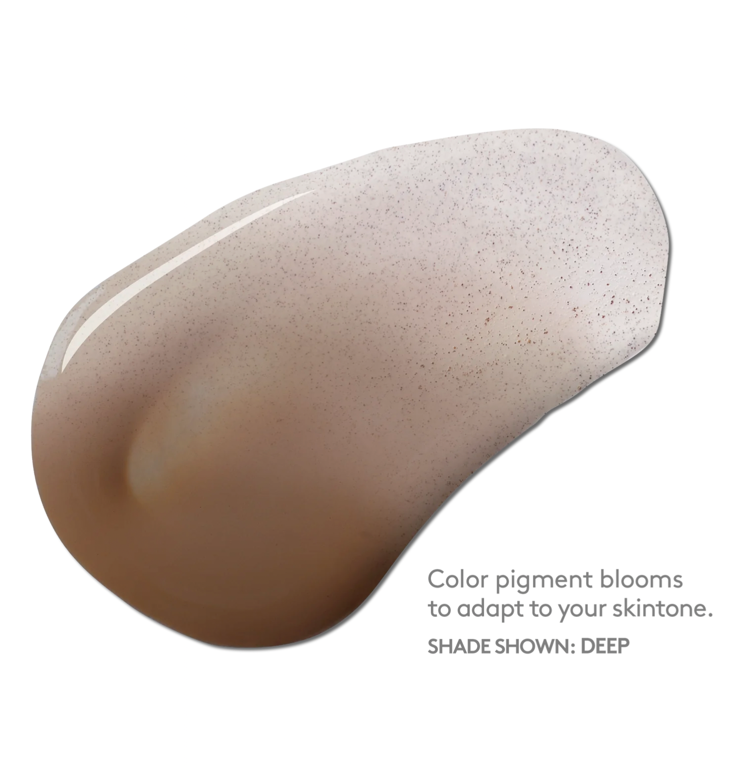 - Flecks of encapsulated pigments adjust to skin's natural tone