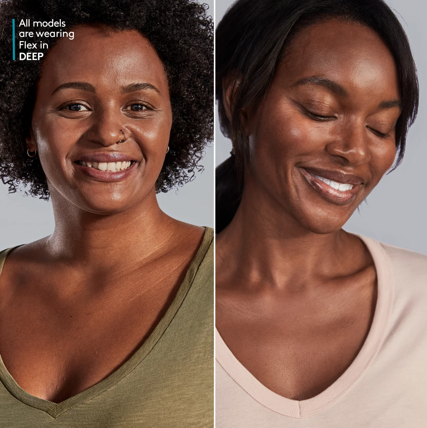 FLEX features innovative, iron oxide pigments that bloom in your fingertips to deliver tone-adapting buildable color coverage with a demi-matte finish.
